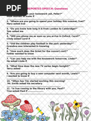 Reported Speech 2 Questions Pdf
